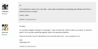 A picture perfect exchange occurred the other day on the forums. You know the story, developer meets designer, start creating a prototype, and apply to Seedcamp Week…
