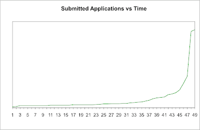 The graph of applications over time resembles the famous hockey stick curve – almost half of the submissions were received on the last day! Last Sunday must have been a busy day for startups over Europe…